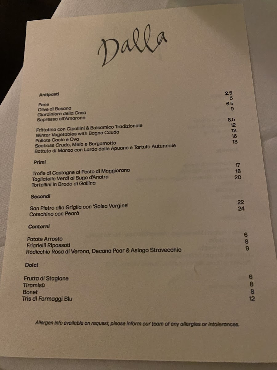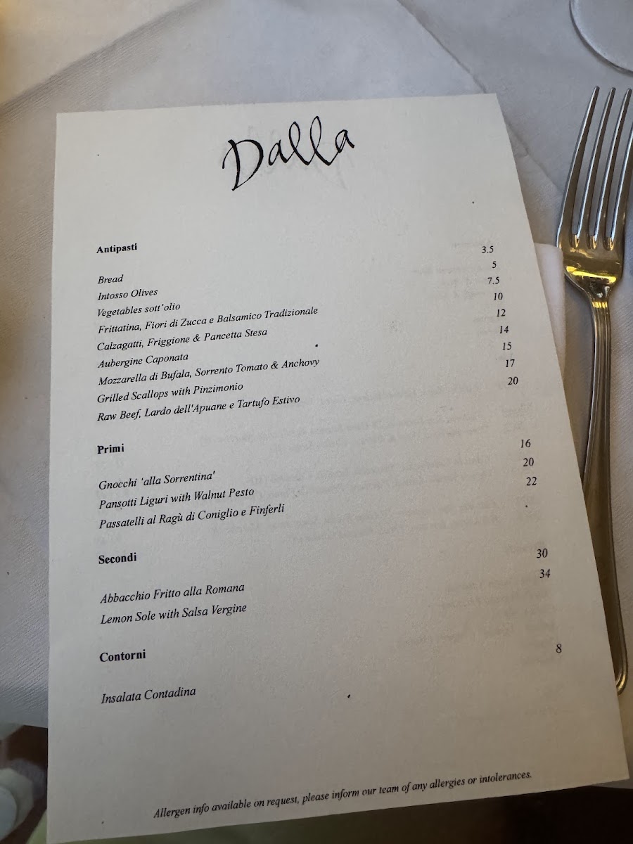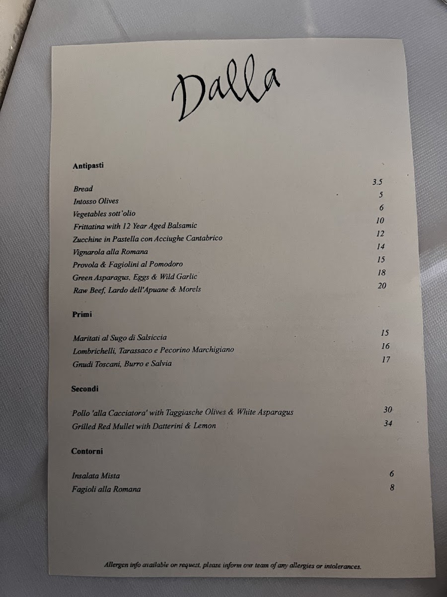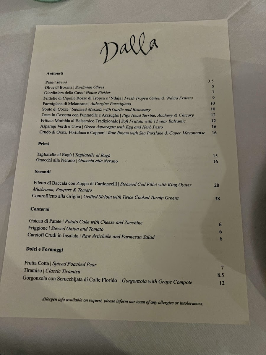 DALLA offers a thoughtfully curated menu that reflects the heart of Italian dining—simple, seasonal, and deeply satisfying. The menu strikes a balance between comforting classics and carefully crafted seasonal dishes, creating a warm and inviting experience whether you’re settling in for a relaxed lunch or an intimate evening meal.